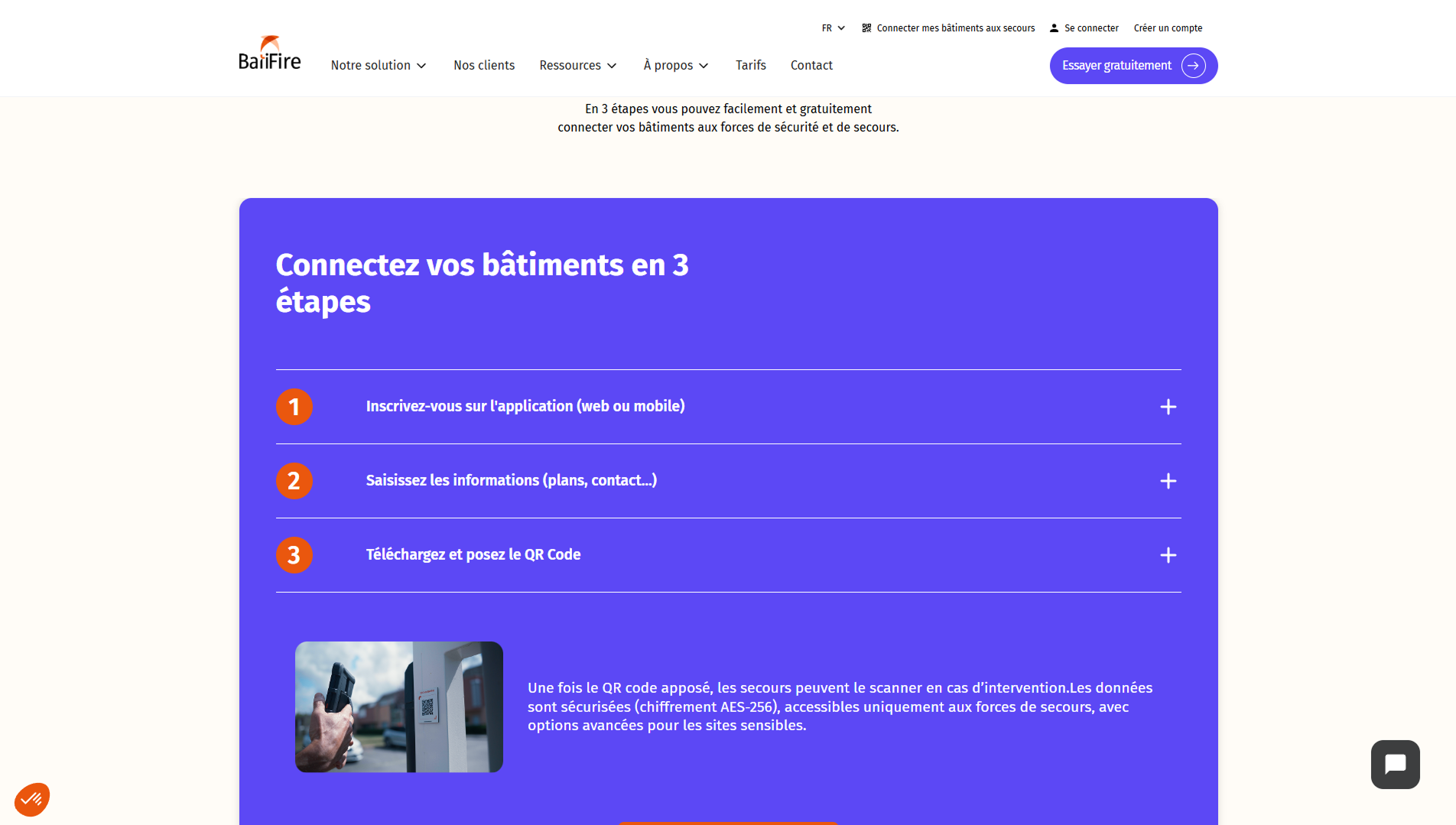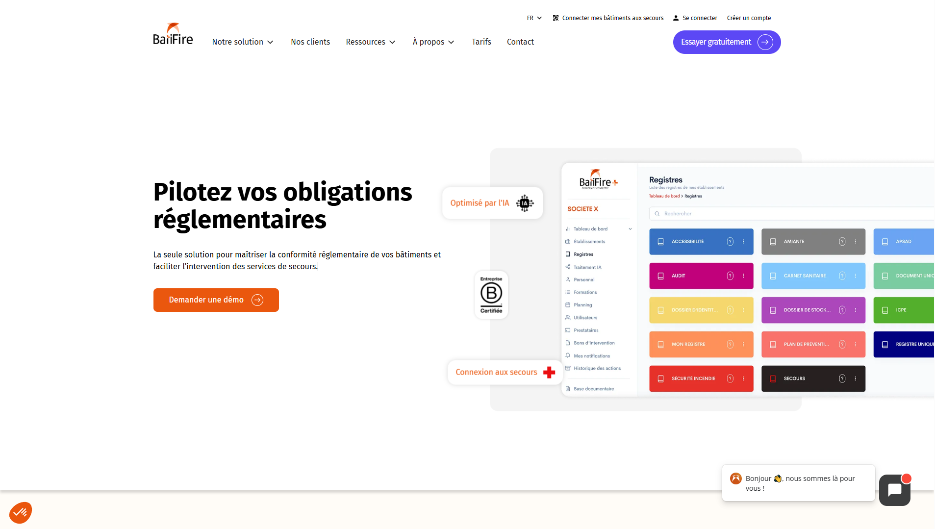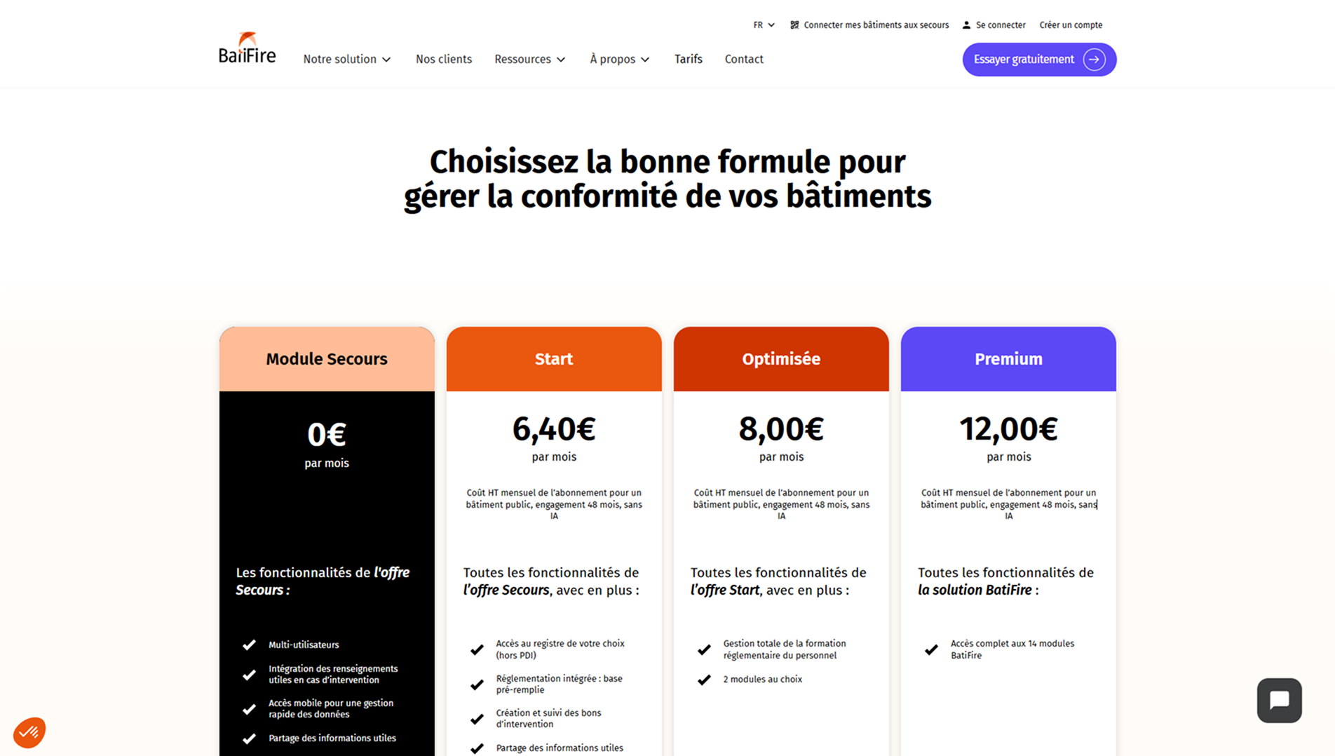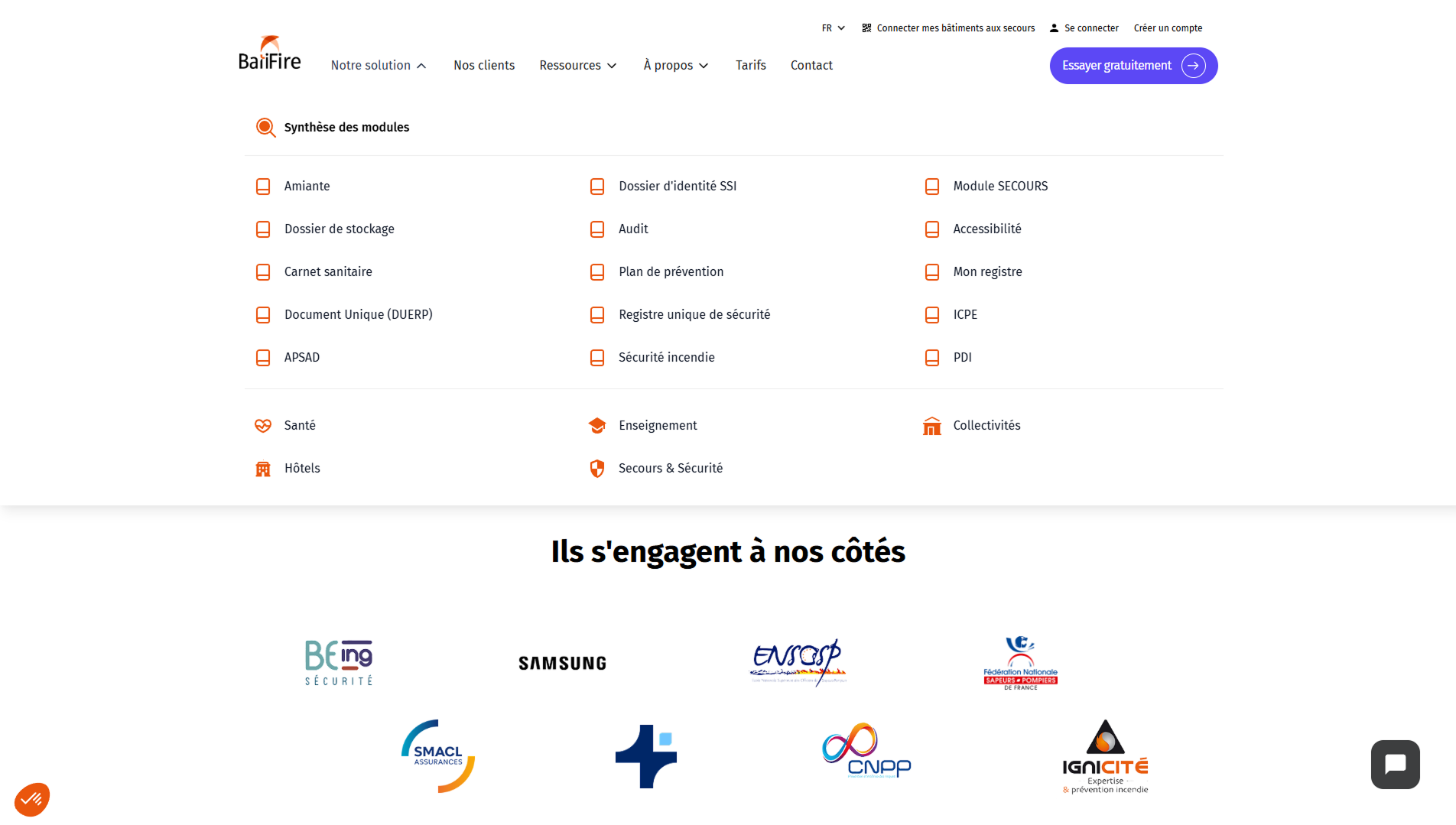 Déjà utilisé par de grandes entreprises et institutions (RATP, Banque Populaire, InterSport, Hôpitaux universitaires de Strasbourg, HEC Paris, Galeries Lafayette…), BatiFire avait besoin d’un site vitrine moderne et performant afin de promouvoir ses fonctionnalités et d’élargir sa clientèle.