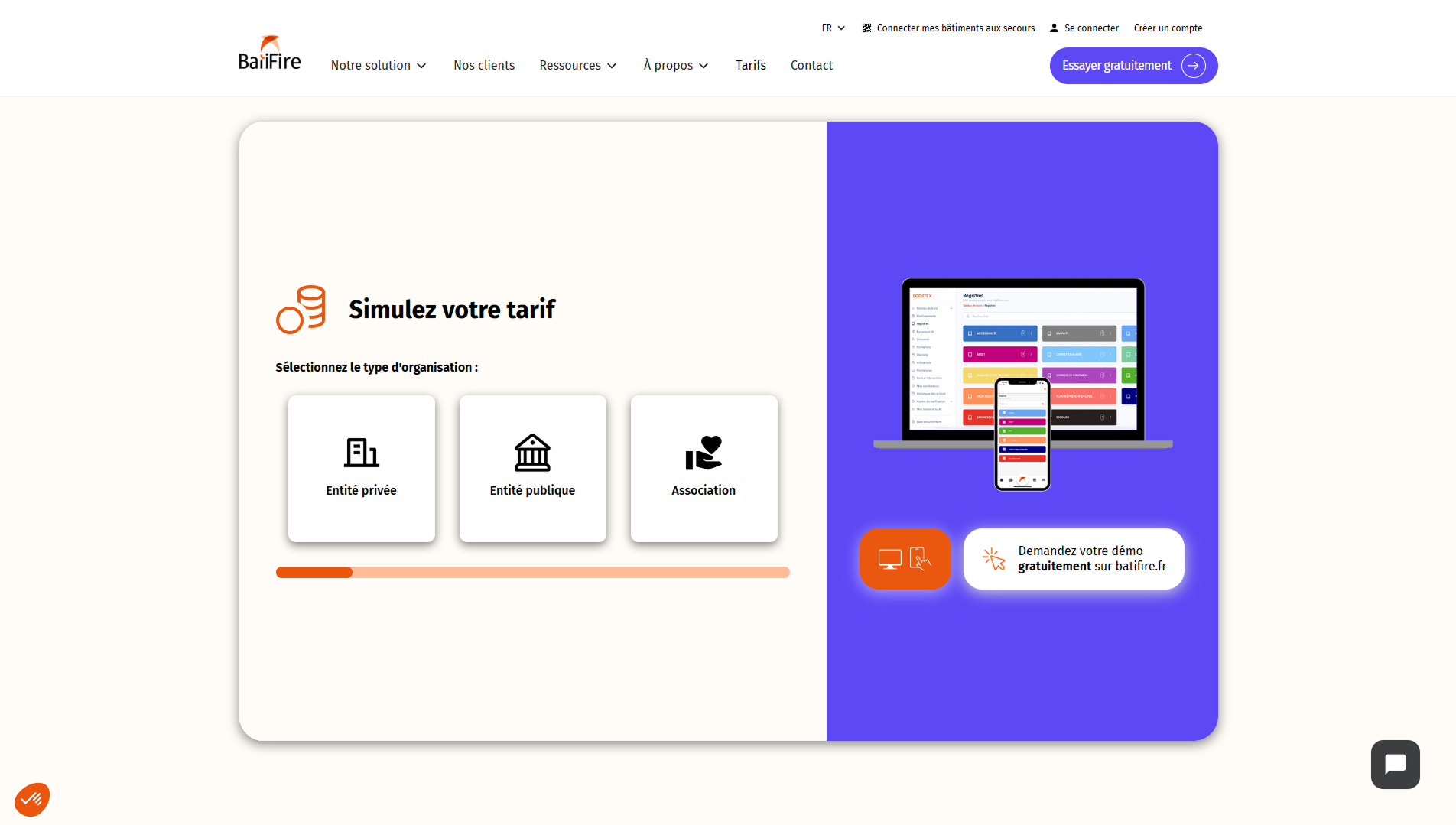 BatiFire : Refonte du site web vitrine & intégration d’un simulateur tarifaire connecté à Pipedrive