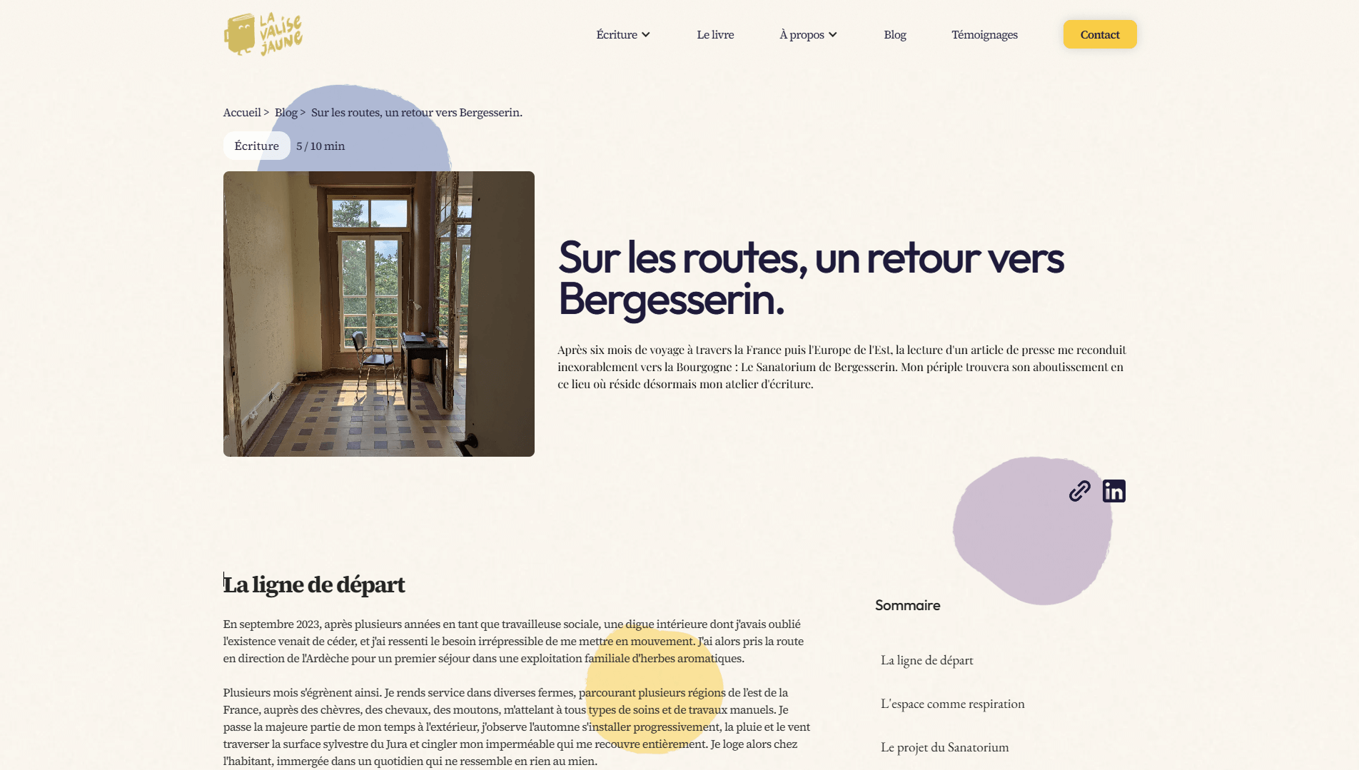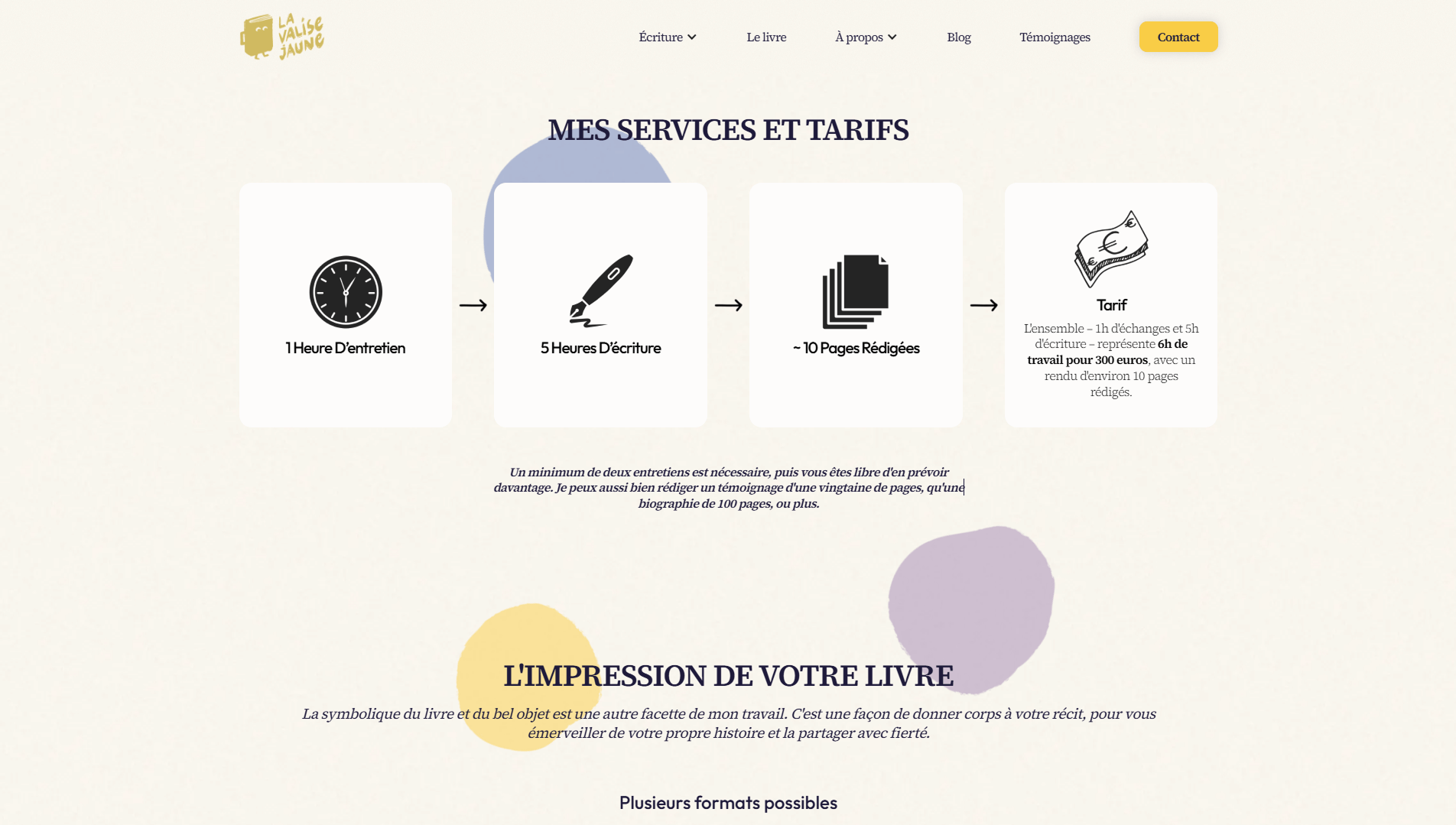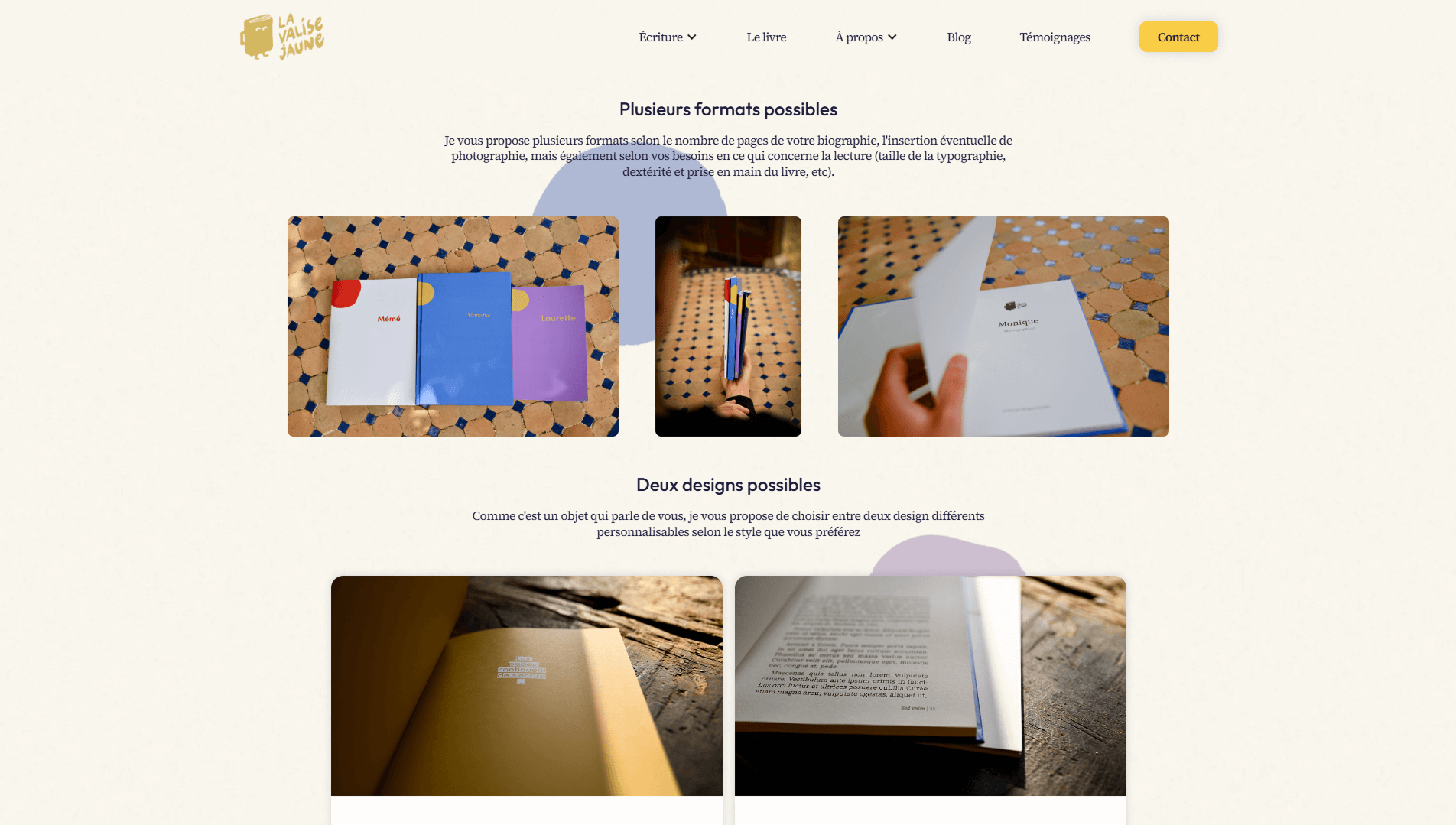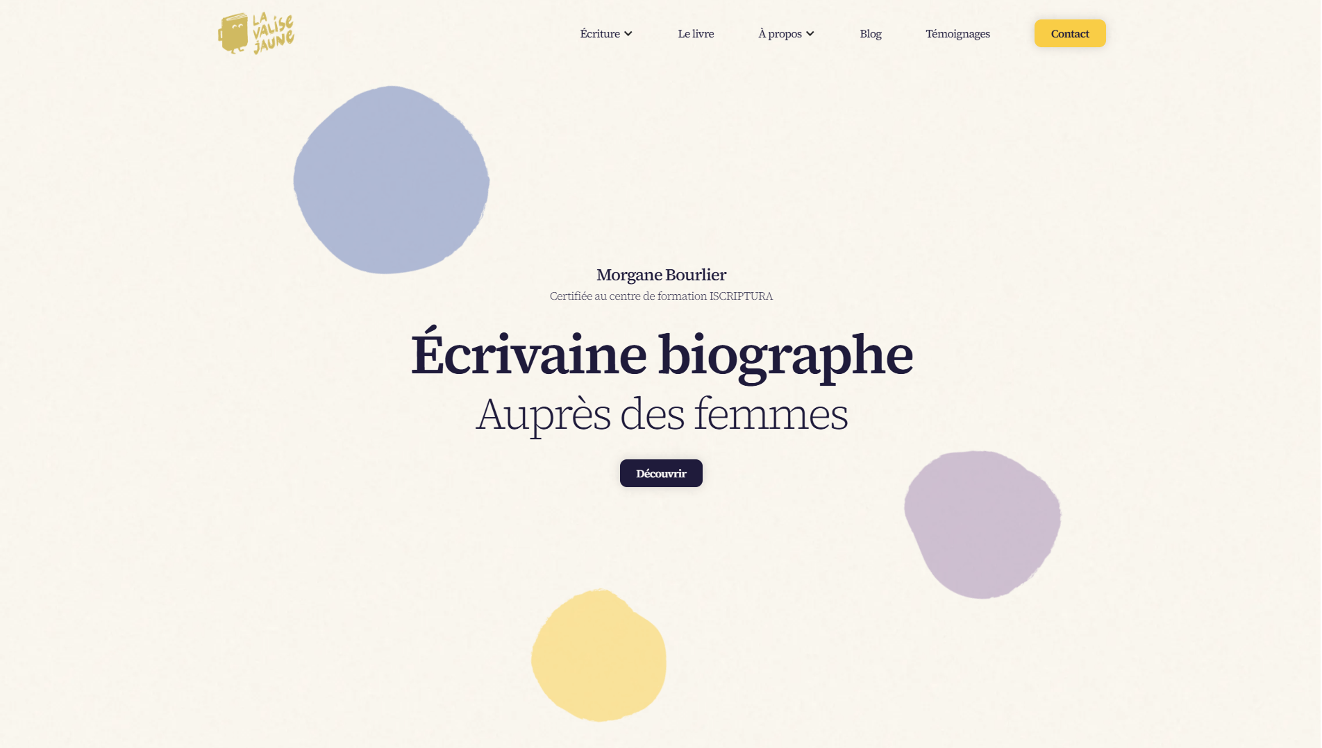 Morgane Bourlier, écrivaine biographe et fondatrice de La Valise Jaune, se consacre exclusivement à l’accompagnement des femmes. Son objectif : valoriser leur image et leur histoire à travers l’écriture de récits de vie et d’ouvrages personnalisés. Pour soutenir cette mission, elle avait besoin d’un site internet clair et épuré, capable de présenter son activité, ses formules et de renforcer sa visibilité en ligne grâce à un blog optimisé SEO.